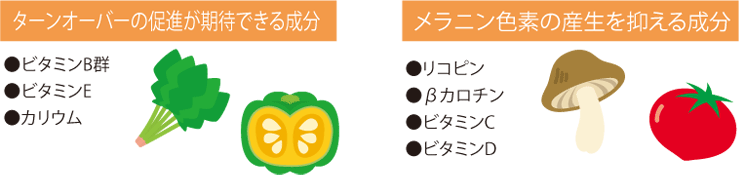 そこで「ターンオーバーの促進」と「メラニン色素の産生を抑制」、この2つそれぞれの効果が期待できる成分を紹介します。